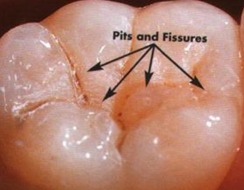 dental pits and groovesClose-up view of grooves and pits of permanent molars